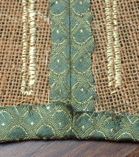 I had worked it over a heavier cotton thread base before to raise the buttonholes, but later, after having studied period examples more carefully I had realized that simple thread buttonholes tended to be slimmer. I made a test version on a scrap of fabric with only once length of the same viscose thread for base, and it looked much more delicate and elegant. I was not unhappy at all to get to skip covering the heavy thread ends.