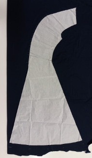 also raised and widened the sleeve cap. The hemline is flared, but the soft, heavy material drapes quite narrow, though movement shows the flaring. |