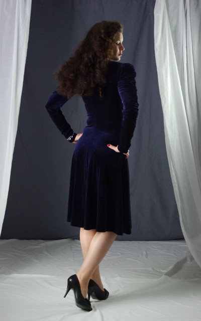 A few evening's quick and fun project ended up in a nice dress. I like how deep blue velvet just oozes glamour, and the figure hugging dress is sexy without being revealing. <<Back to the Project Page |