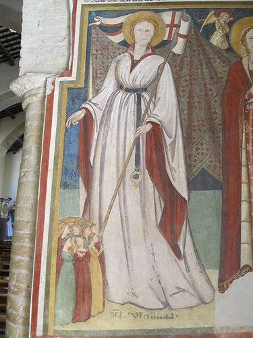 an Italian fresco from circa 1420 depicting Saint Ursula in a