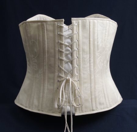 jotka olivat vinoon leikattua coutil-kaistaletta saumojen